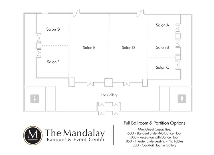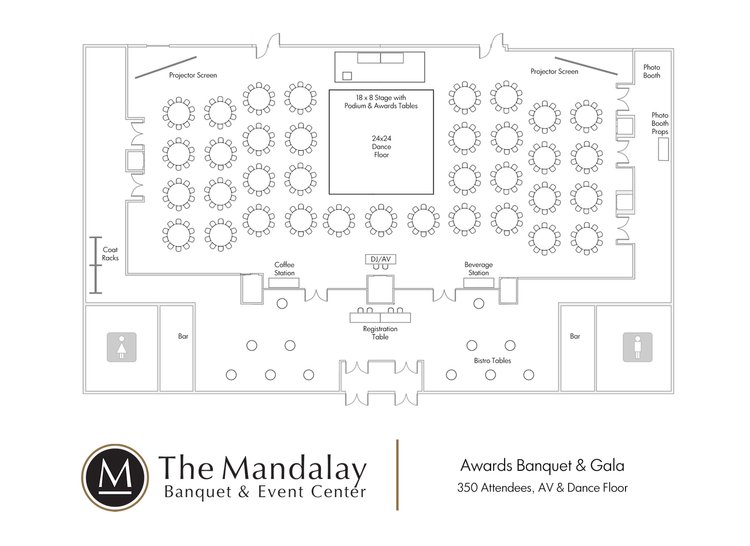 Discover the versatility of our spacious Ballroom, which can be easily partitioned into smaller salons, ideal for meetings, break-out sessions, or intimate gatherings. Our expert Mandalay Event Center team will assist you in selecting the perfect event spaces to suit your event requirements and guest list size. Additionally, we will design your floor plan, ensuring a seamless and tailored experience, much like the ones featured here. Let us transform your vision into reality at Mandalay Event Center!